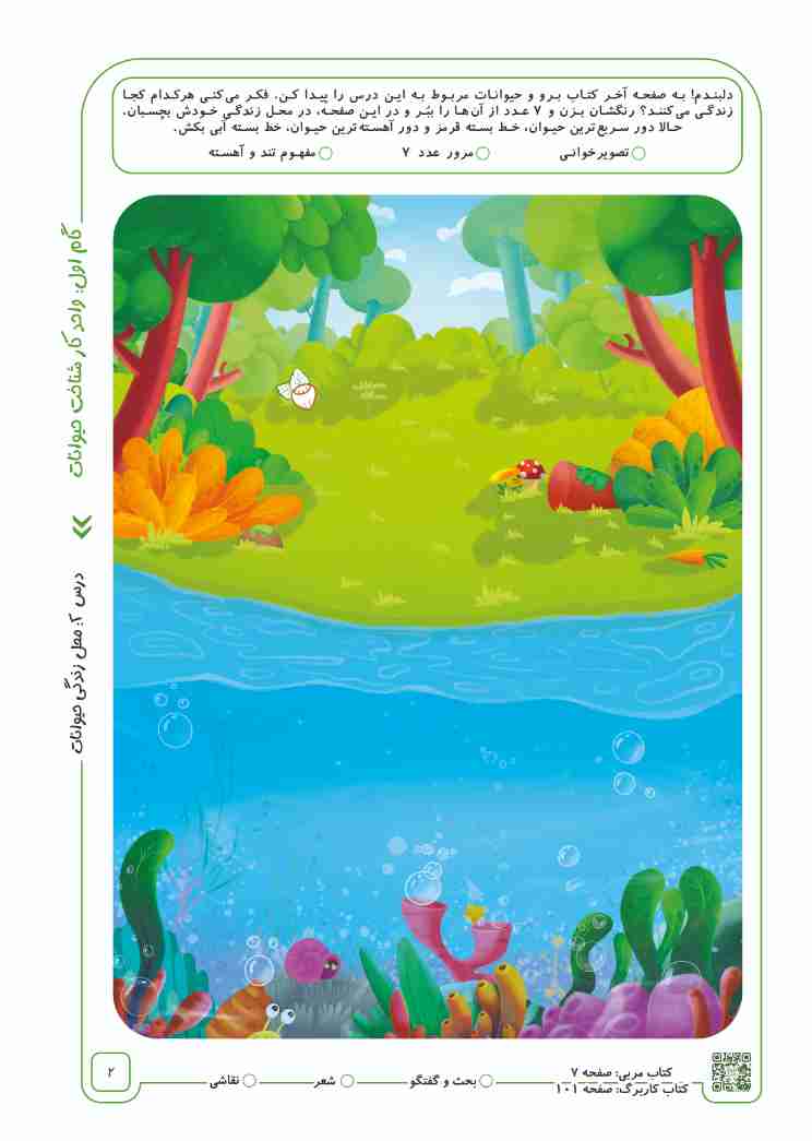 از طریق سؤالات ذیل، با نوآموزان دربارهی محل زندگی حیوانات بحث و گفتوگو کنید.